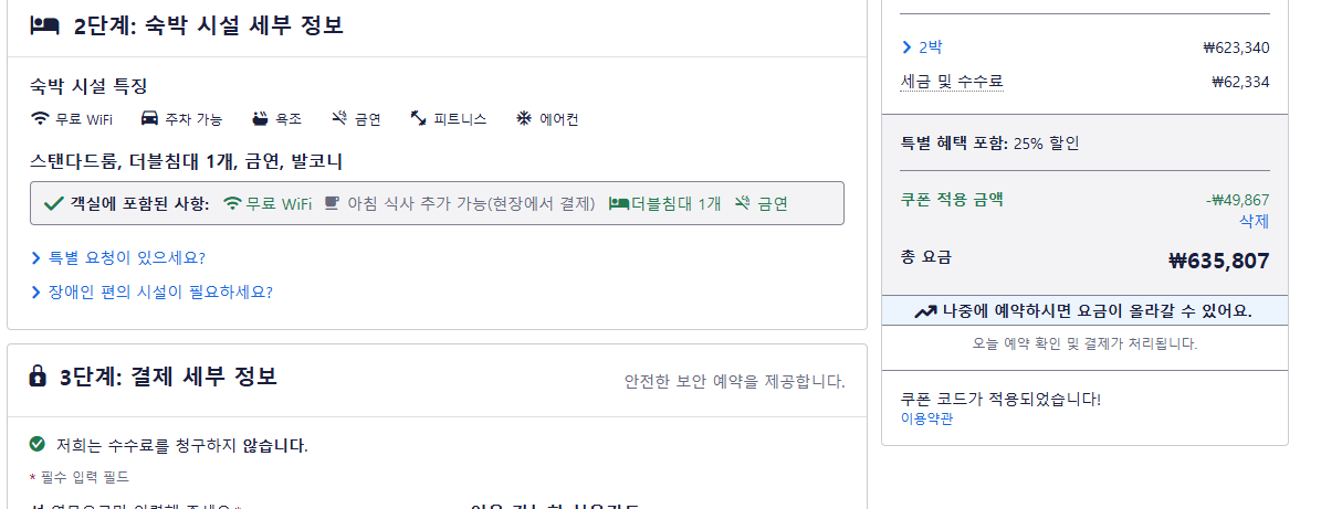 각종 세일 및 쿠폰코드는 상황에 따라 한 번의 예약에 하나만 입력할 수 있지만, 프로모션 자체 할인과 쿠폰코드를 겹치면 실제 체감가는 50%까지 내려갑니다!